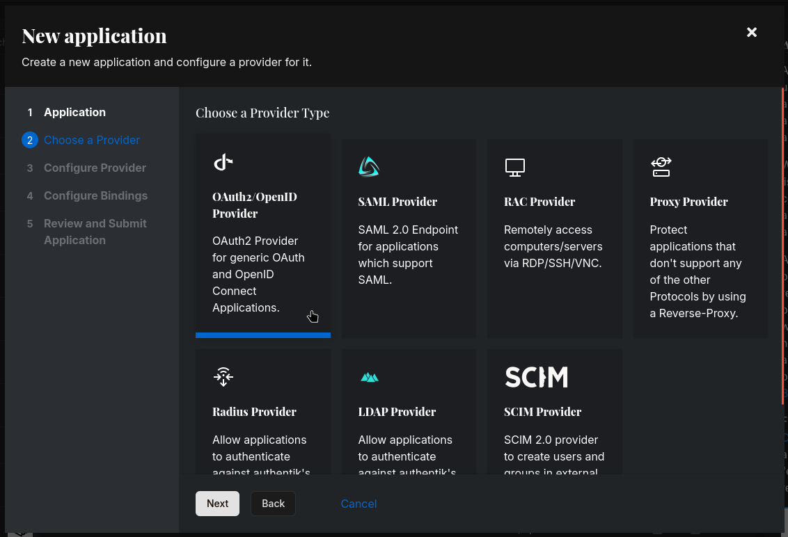 Создаем новое приложение с провайдером. Из опций провайдера выбираем OAuth/OpenID Connect