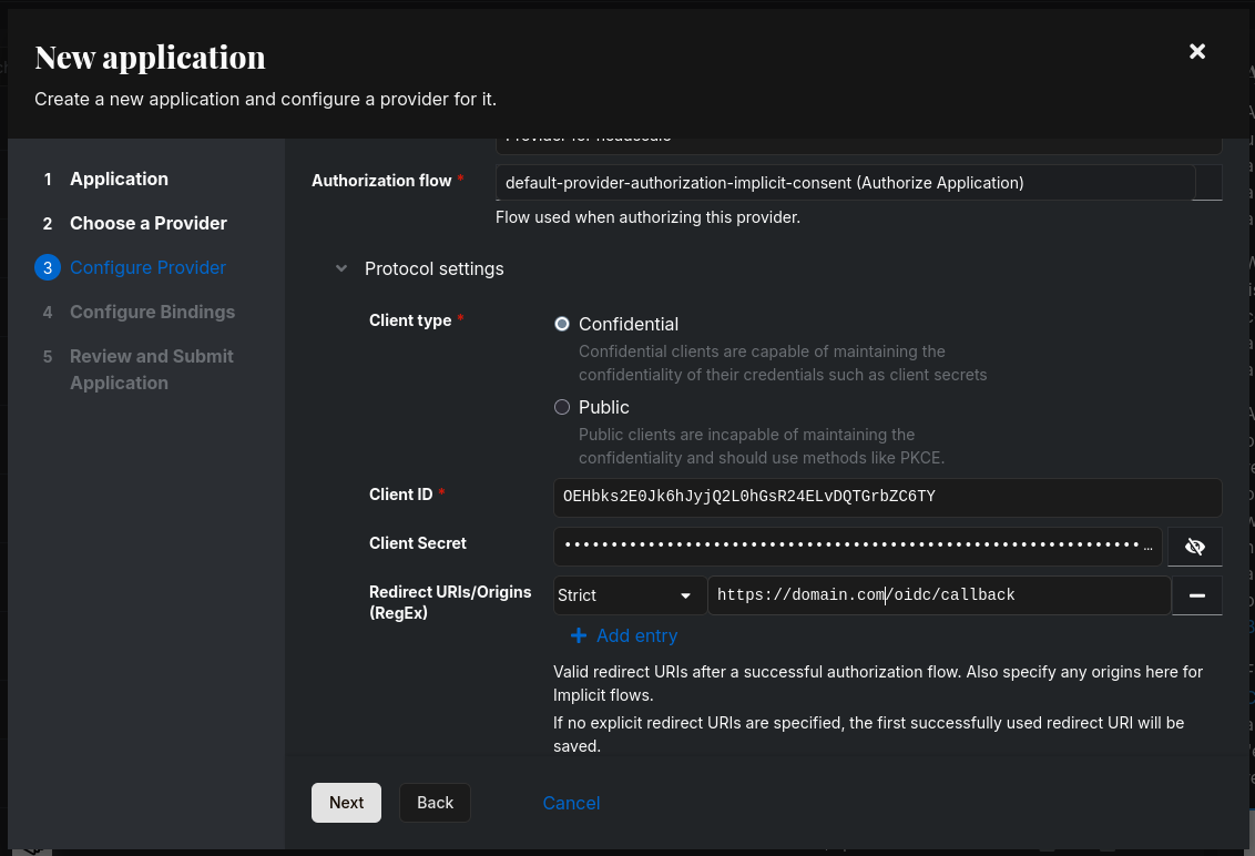 # и заполнить поля client_id и client_secret значениями из authentik